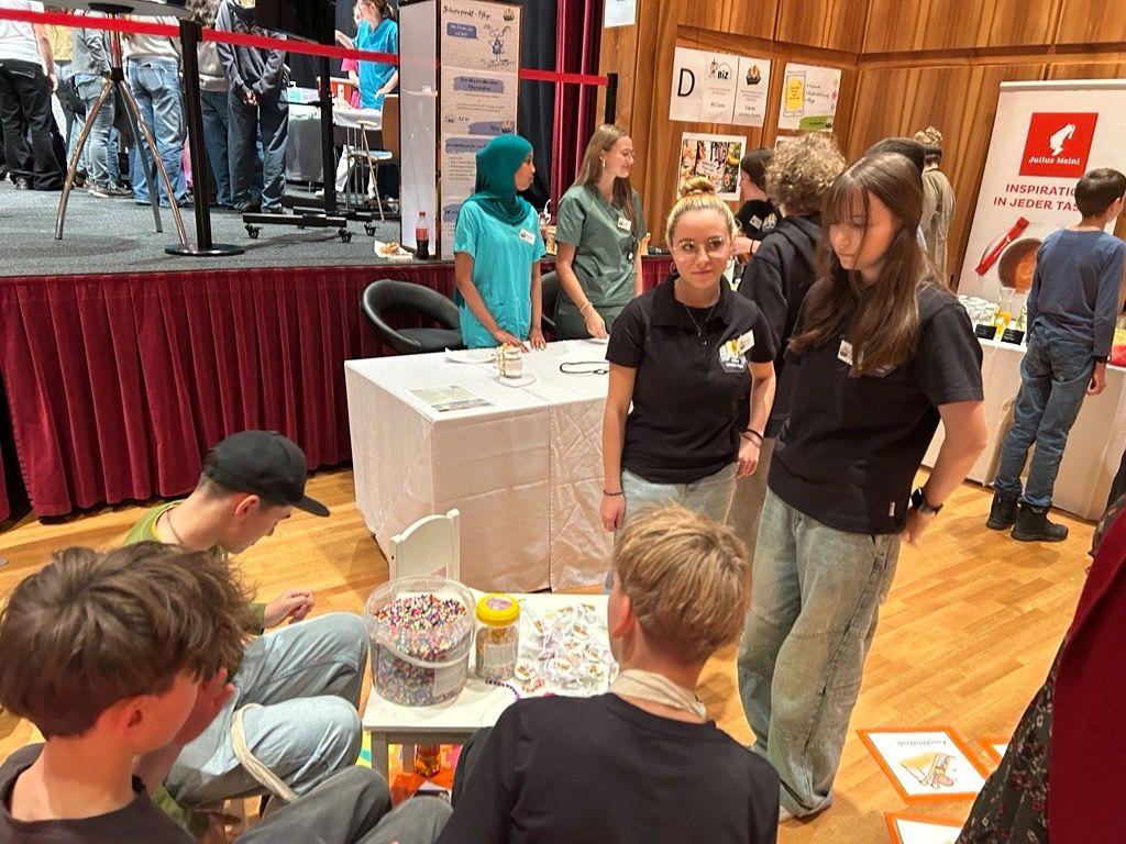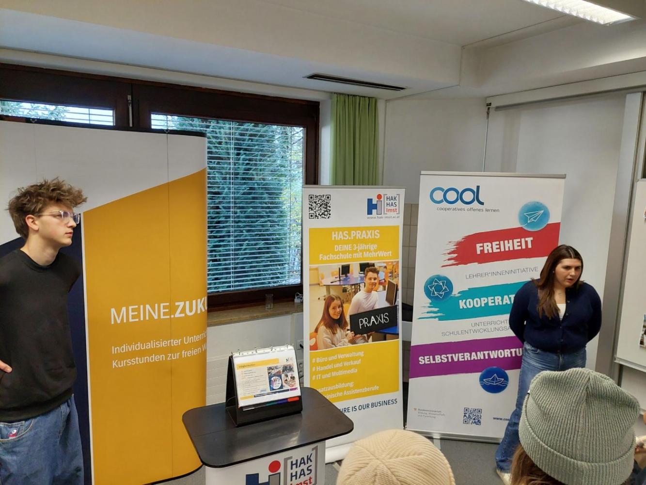 Wir konnten uns direkt bei Lehrerinnen, Lehrern und SchülerInnen über Ausbildungswege, Schwerpunkte und Schulalltag informieren. Interessant war, dass wir alle Fragen stellen konnten, die uns rund um die Schulwahl beschäftigen – von Aufnahmebedingungen bis zu möglichen Berufsperspektiven.