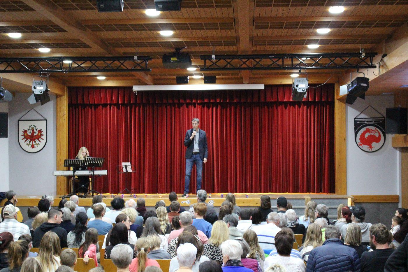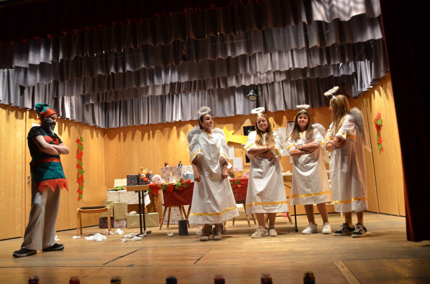 Am Donnerstag durften wir unsere Aufführung im Gemeindesaal von Pians spielen – und der Saal war bis auf den letzten Platz mit unseren Familien und Freunden gefüllt. Das war richtig aufregend!