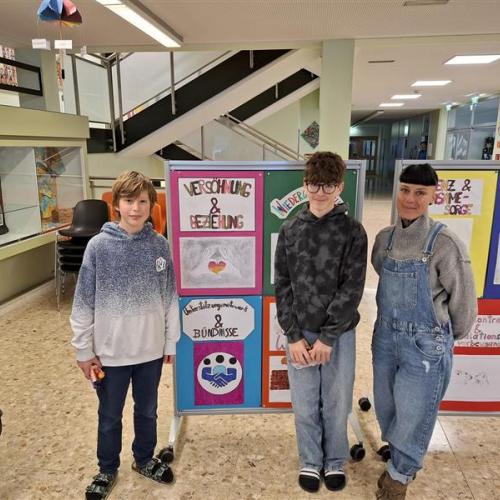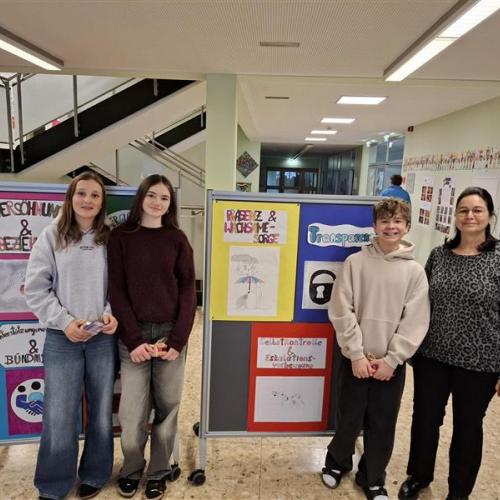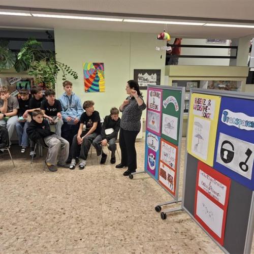 In einem vorbereitenden Workshop erklärten die BE‑Lehrerinnen Silvia Prantner und Johanna Carpentari die Bedeutung dieser Begriffe und unterstützten die Schülerinnen und Schüler bei der Umsetzung ihrer Ideen. Aus allen entstandenen Arbeiten wurden anschließend die besten sieben Entwürfe ausgewählt. Diese wurden zu Plakaten weiterverarbeitet und schmücken nun unser Schulhaus und in Zukunft die Klassen.