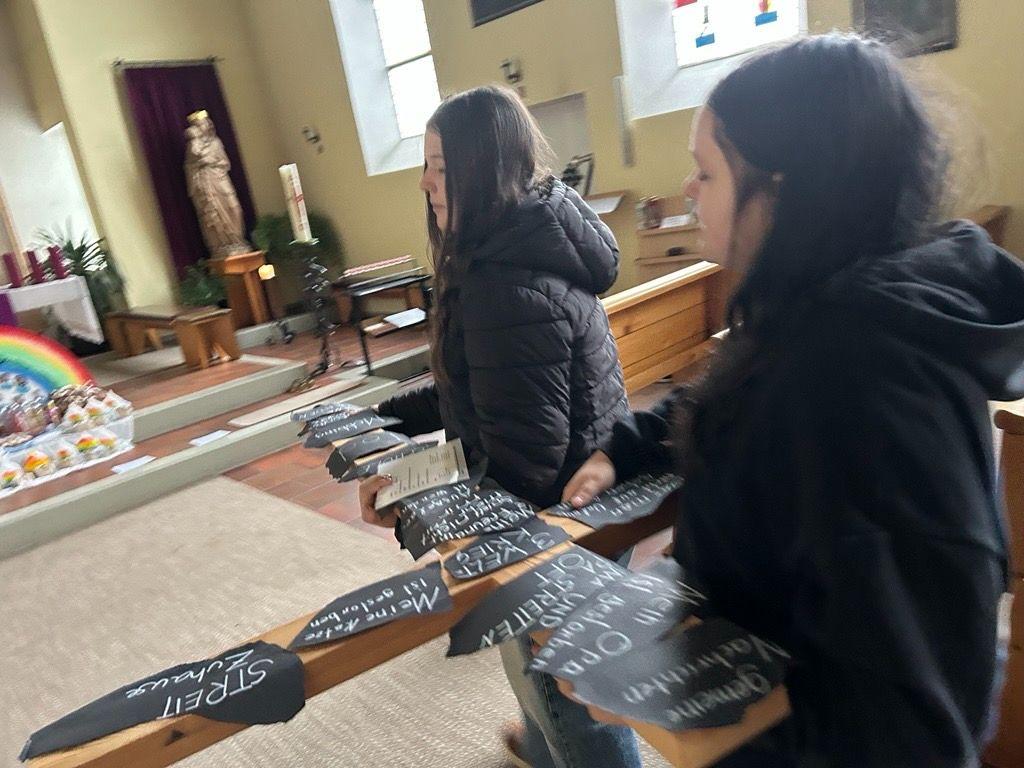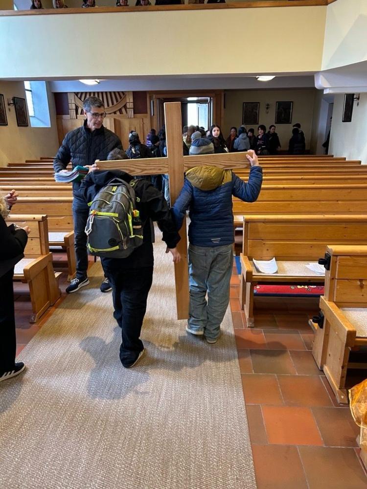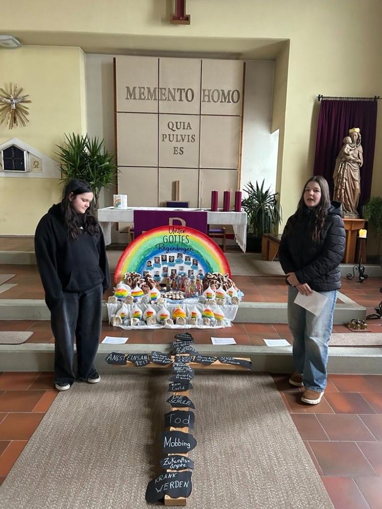 Beim diesjährigen Schulgottesdienst unter dem Motto „Vom schweren Kreuz zum neuen Leben“ setzten sich die Schülerinnen und Schüler mit Sorgen, Hoffnung und der Bedeutung von Ostern auseinander. In einem Anspiel wurde sichtbar, welche „Kreuze“ viele mit sich tragen – und wie sich diese durch die Botschaft von Ostern verwandeln können. Musik, Texte und persönliche Gedanken machten deutlich: Ostern schenkt Mut, Hoffnung und die Zuversicht auf einen Neuanfang.