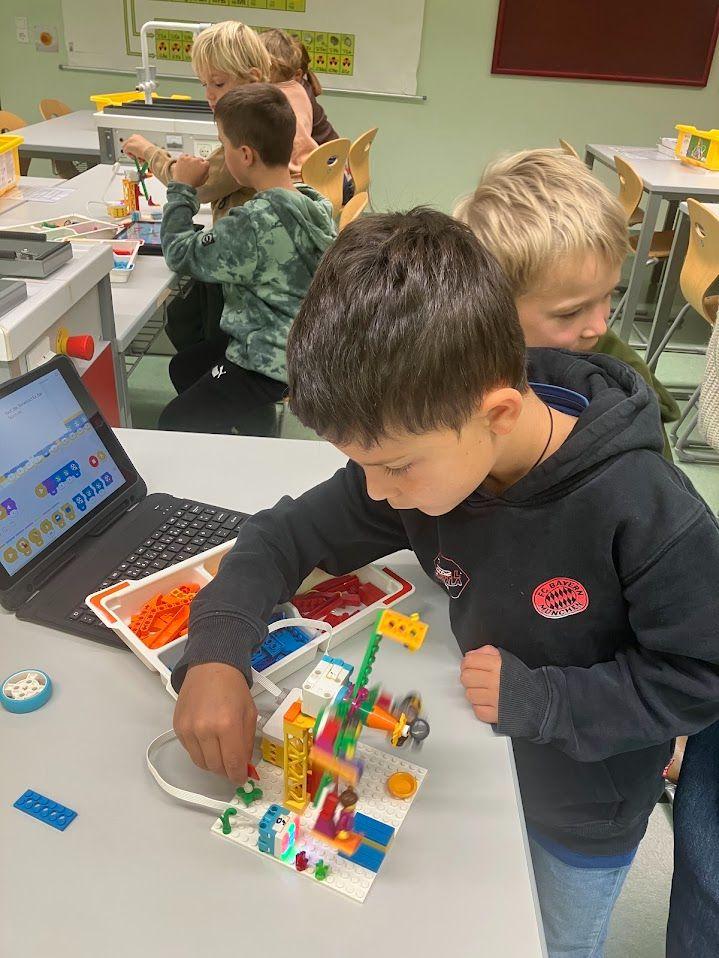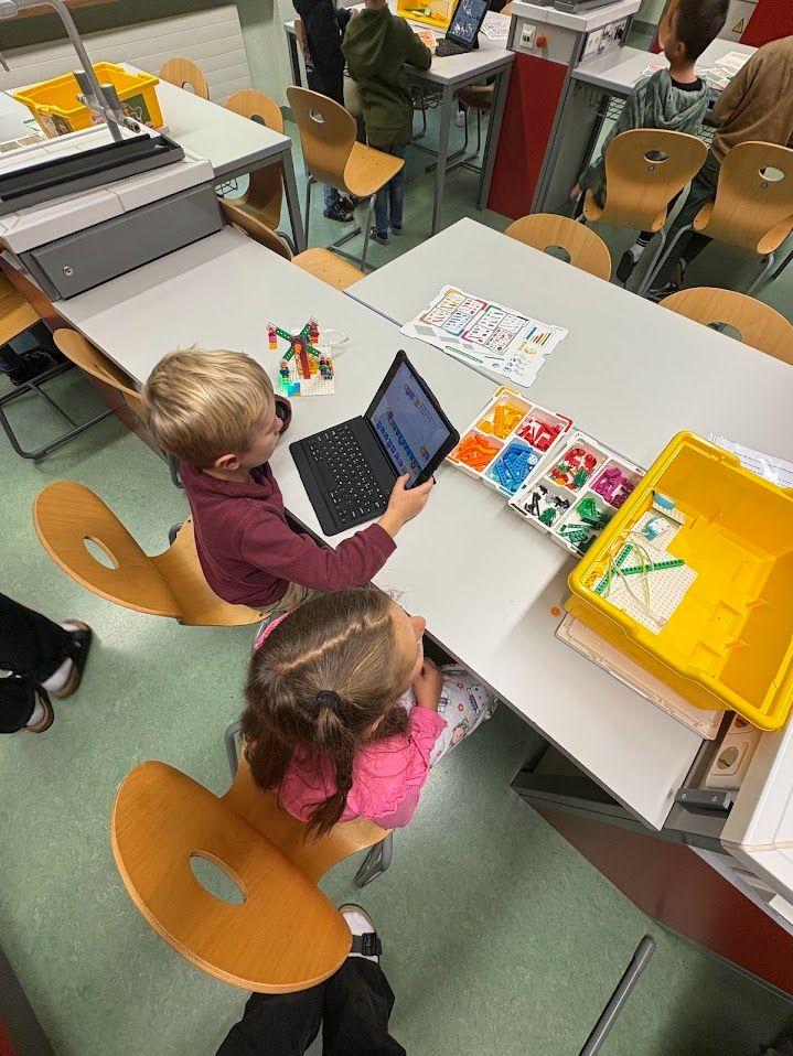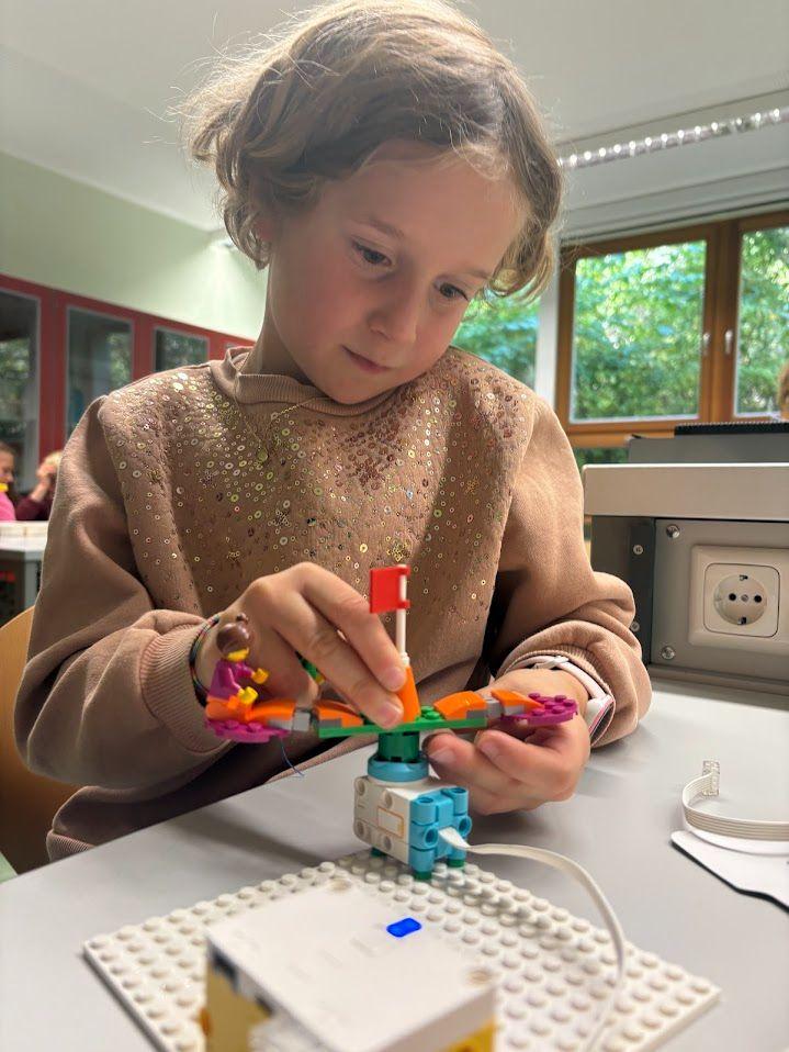 Nach dieser kurzen Einführung in die Grundlagen des Bauens und Programmierens durften die Kinder selbst aktiv werden. Sie bauten und programmierten kreative Modelle wie ein Karussell, ein Riesenrad oder eine Schaukel. Dabei brachten sie eigene Ideen ein und probierten verschiedene Programmierbefehle aus.