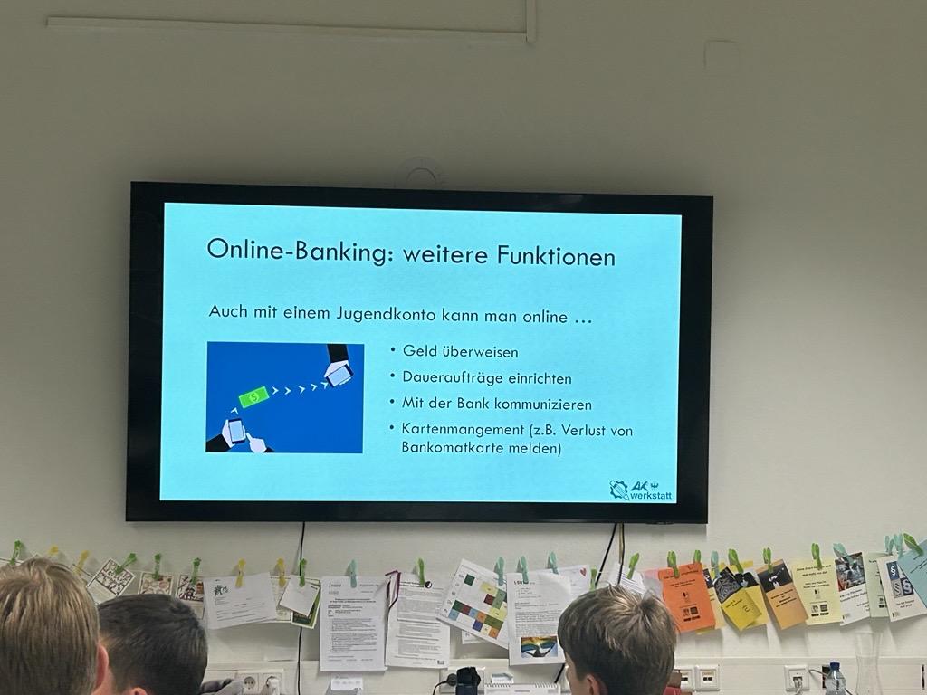 Im Rahmen des Berufsorientierungsunterrichts fand an unserer Schule die Veranstaltung „Schau aufs Geld“ der Arbeiterkammer statt. Daran nahmen die 4. Klassen teil, um einen bewussten Umgang mit Geld zu erlernen.