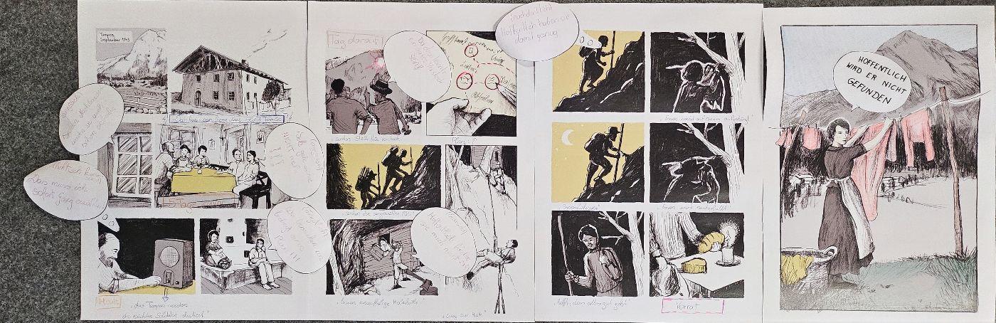 Dabei erhielten die Kinder spannende Einblicke in die NS-Geschichte im Ötztal. Besonders interessant war die Arbeit mit der Biografie von Georg Mair, die als Graphic Novel aufbereitet wurde. Durch diese anschauliche Methode konnten die Schüler:innen Geschichte aus einer persönlichen Perspektive kennenlernen und gemeinsam darüber diskutieren.